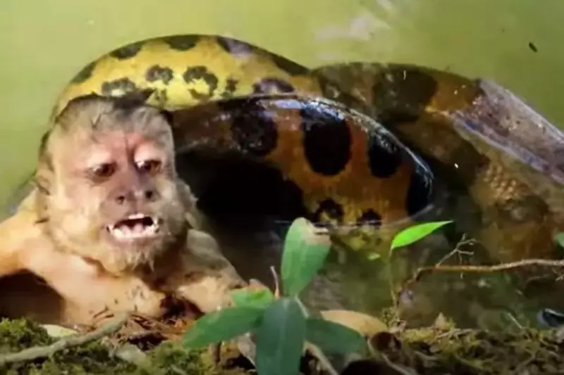 O vídeo de um macaco-prego estrangulado por uma sucuri em Bonito, no Mato Grosso do Sul, voltou a viralizar nas redes sociais nesta semana O caso ocorreu em agosto de 2022, quando a serpente tentava arrastar o primata para o rio, enquanto ele se agarravas nas margens para não morrer.