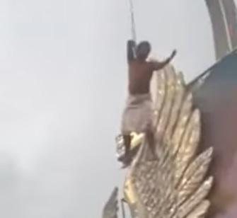 Homem passa mal após ficar pendurado em carro alegórico por mais de uma hora; veja vídeo