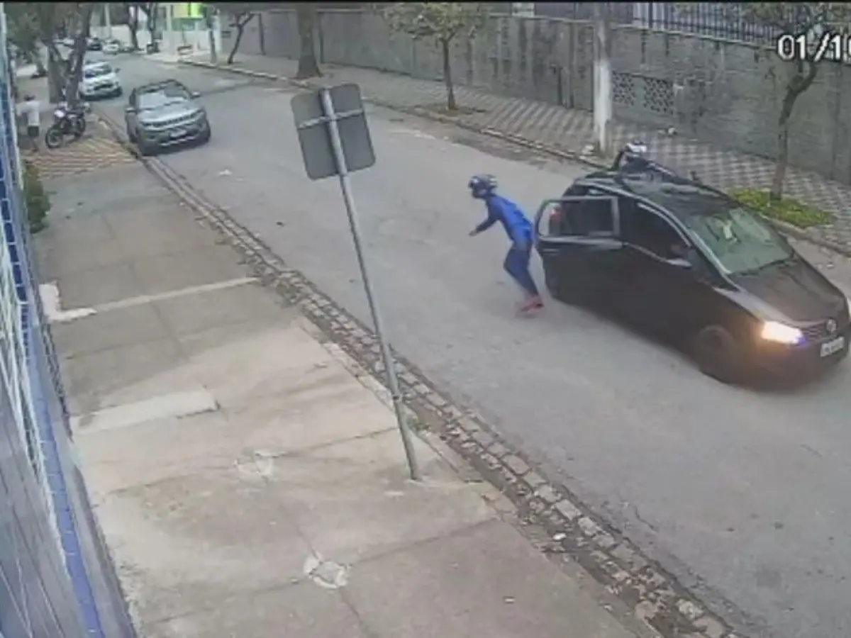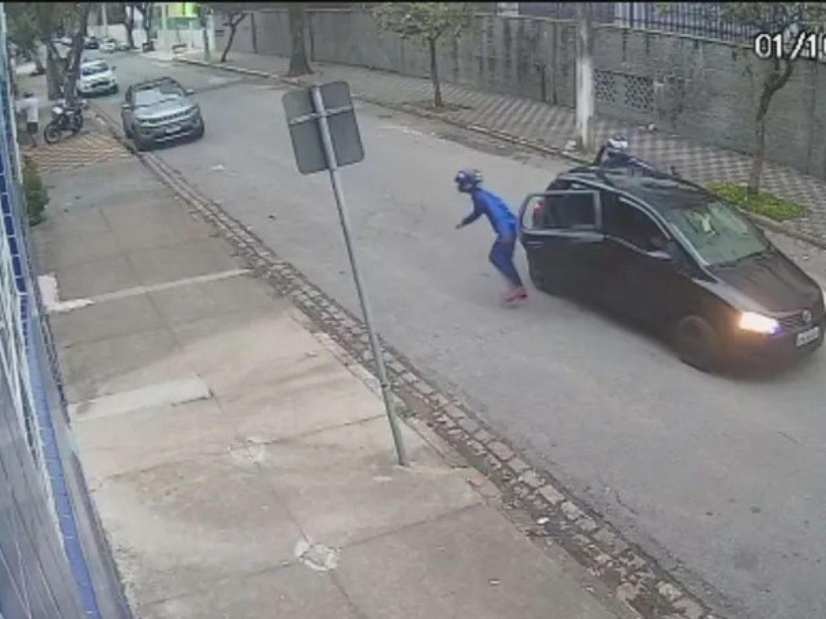 Uma motorista jogou o carro contra dois suspeitos que tentaram roubar o esposo dela no último sábado (1º), no bairro Pompeia, em Santos (SP). A vítima foi abordada por homens armados enquanto descia da moto para entrar em casa. Os assaltantes anunciaram a ação criminosa e pediram o transporte e o celular. A mulher, que chegava no carro da família, percebeu a cena e acelerou em direção à dupla. Um deles ficou prensado entre a moto e o veículo. O outro homem conseguiu correr e fugiu.