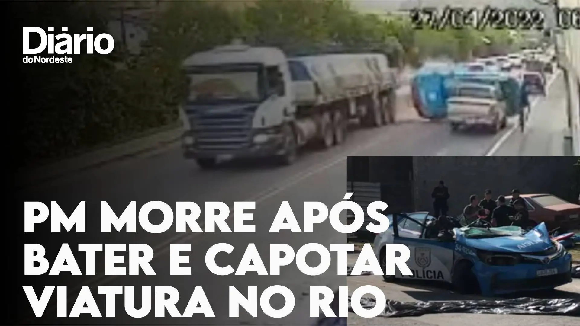 Um policial militar morreu após um grave acidente de trânsito na RJ-116, em Nova Friburgo (RJ), nesta quarta-feira (27). Câmera de segurança mostra o momento em que o carro da Polícia tenta fazer uma ultrapassagem, mas perde o controle, bate na traseira de um caminhão, capota e atinge uma caminhonete que vinha em sentido contrário. Um ciclista que vinha no sentido da caminhonete cai após ser surpreendido com a batida, que amassou o teto da viatura e imprensou o militar, segundo o portal G1. O agente que conduzia o carro morreu no local; o outro PM, no banco do carona, foi socorrido para um hospital com ferimentos e não corre risco de morte.