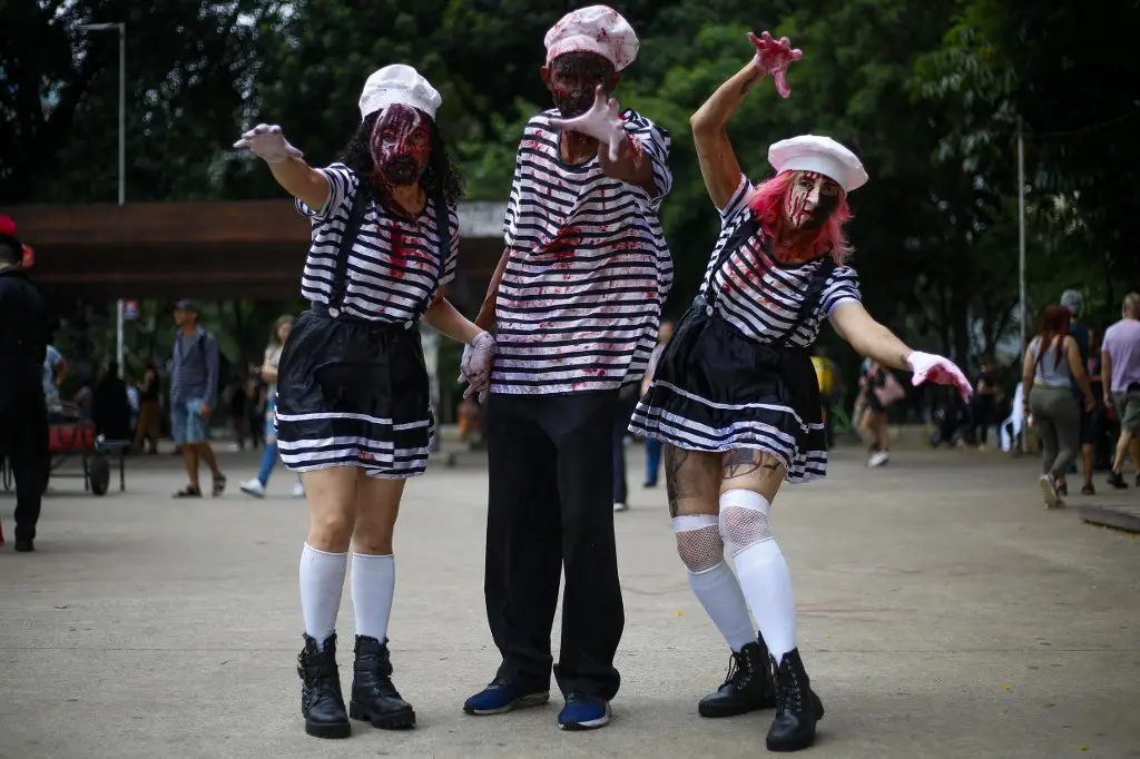 Pessoas fantasiadas de zumbis se reúnem no feriado na capital paulista desde 2006