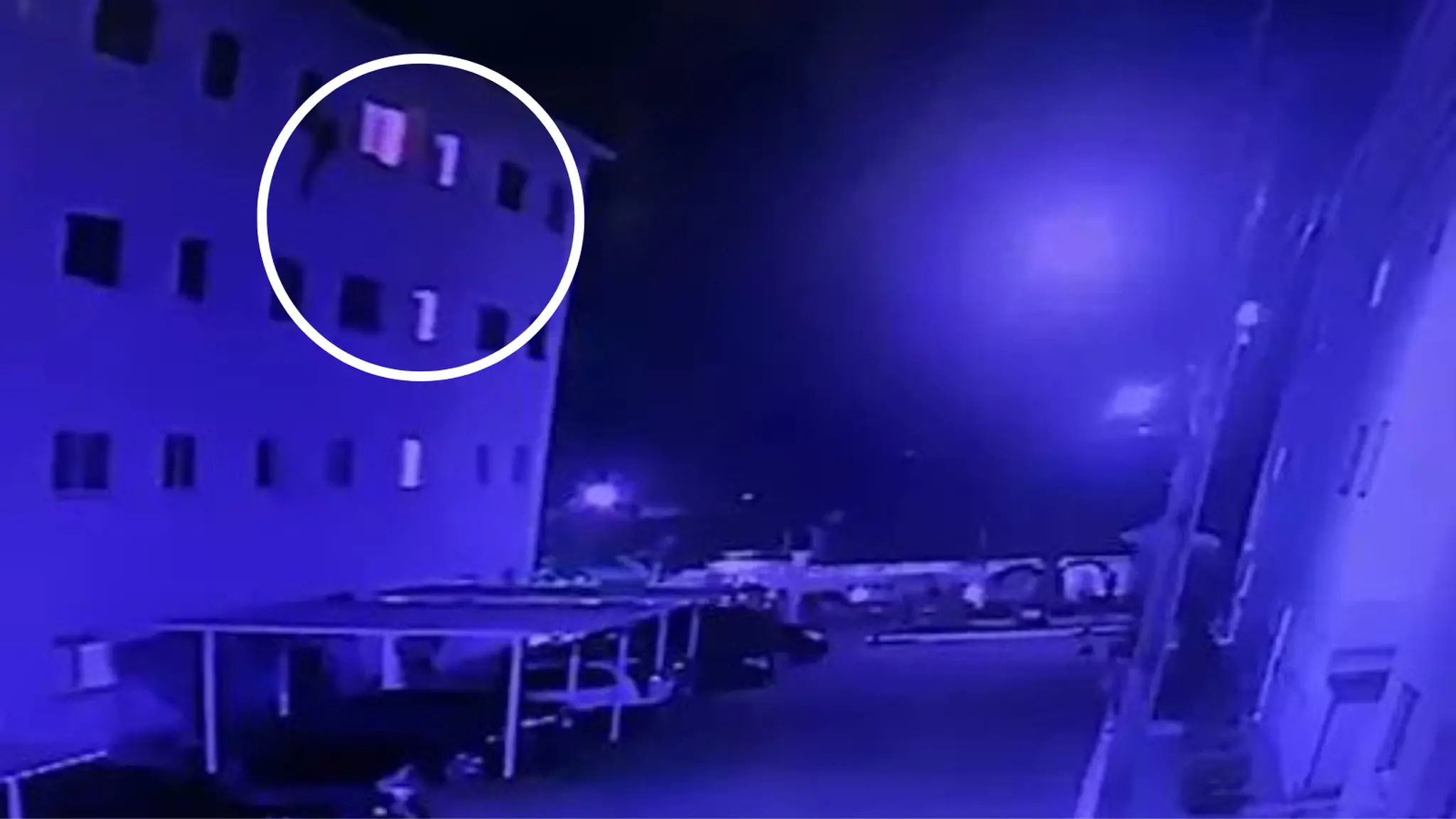 O registro, feito pelas câmeras de segurança, mostra o momento em que a criança fica pendurada com o corpo para fora da janela. Percebendo o possível acidente, o sindico aparece dirigindo-se ao prédio para subir até o apartamento.