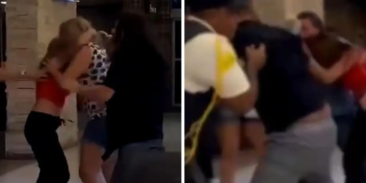As imagens da briga mostram duas mulheres puxando o cabelo uma da outra. Um dos homens envolvidos chegou a dar um soco no rosto de uma delas.