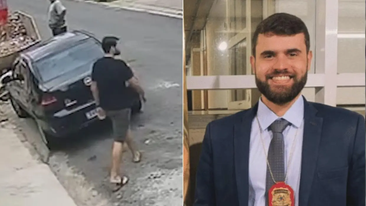 Câmeras de segurança captaram o momento do crime. As imagens mostram o delegado, que estava de folga, usando camiseta, bermuda e chinelos, enquanto caminhava pela rua Amaro Guerra. Pouco depois, um criminoso chega em uma motocicleta e para próximo a uma obra, na calçada.
