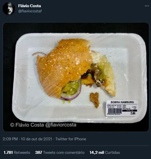 Os restos de um hambúrguer, por exemplo, foram os responsáveis pela primeira divulgação do ensaio, feita no último dia 10 de outubro. No Twitter, rede social onde ele revela as imagens, já alcançou mais de 14,2 mil curtidas e quase um milhão de visualizações. Para Flávio, as fotos funcionam como alerta.