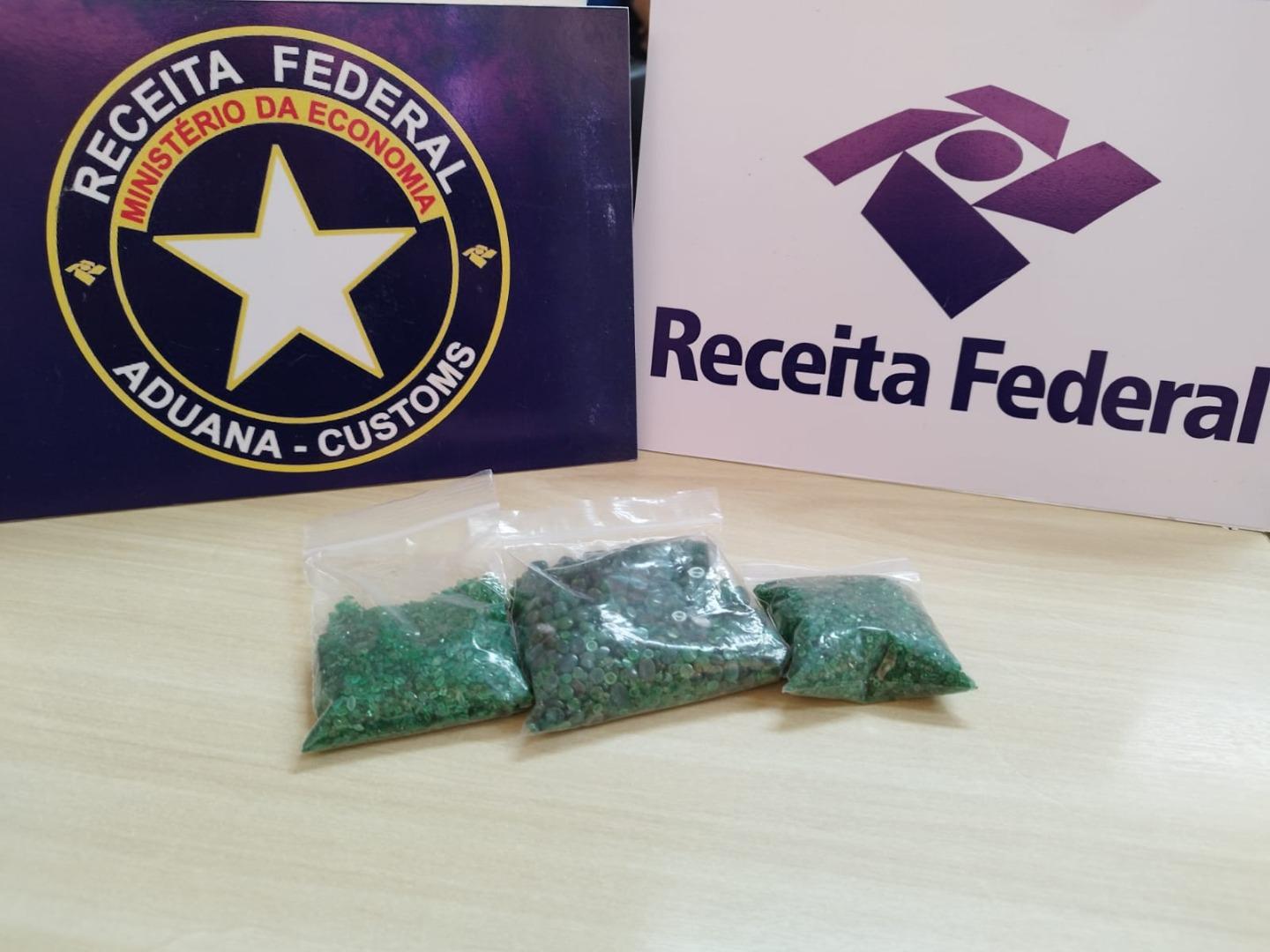 A Receita Federal apreendeu, em Recife, um pacote com 386 gramas de esmeraldas avaliadas em, aproximadamente, R$ 550 mil. A encomenda, enviada do Rio de Janeiro pelos Correios com destino a cidade nordestina, estava sem documentação que comprovasse a origem do material, o que resultou na apreensão.