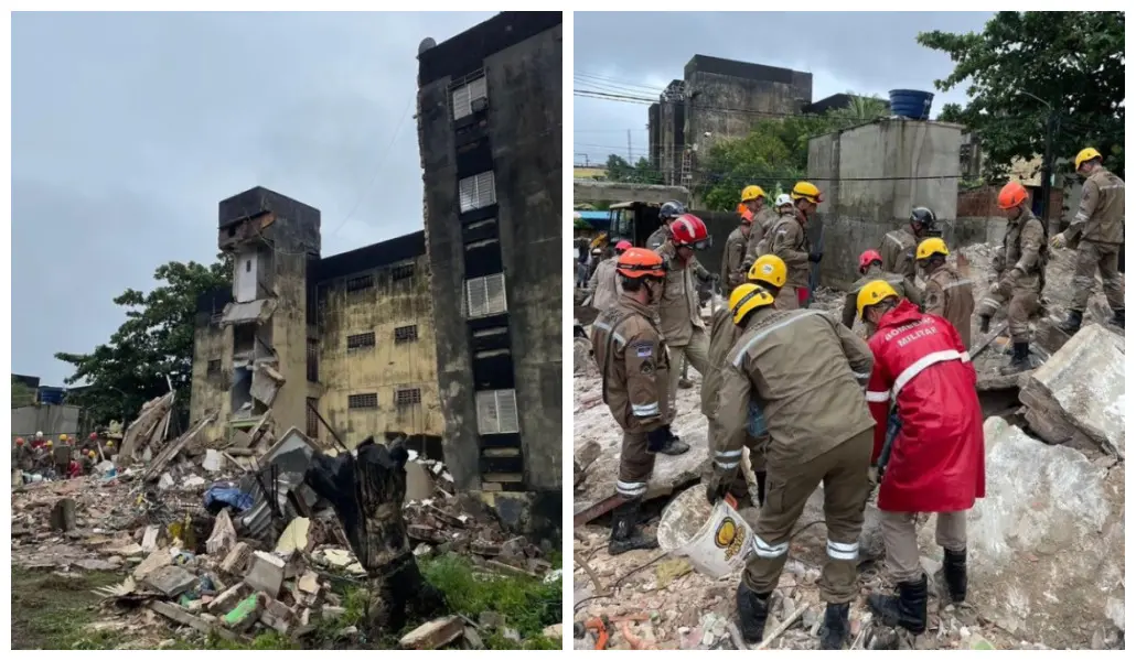 Duas pessoas são encontradas mortas em destroços de prédio que desabou no Grande Recife