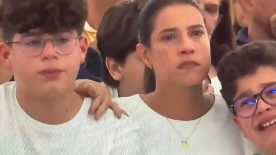 A candidata ao governo de Pernambuco, Raquel Lyra (PSDB), esteve acompanhada nesse sábado (8) dos dois filhos e do pai, João Lyra Neto, na missa de sétimo dia de falecimento do seu marido, Fernando lucena.