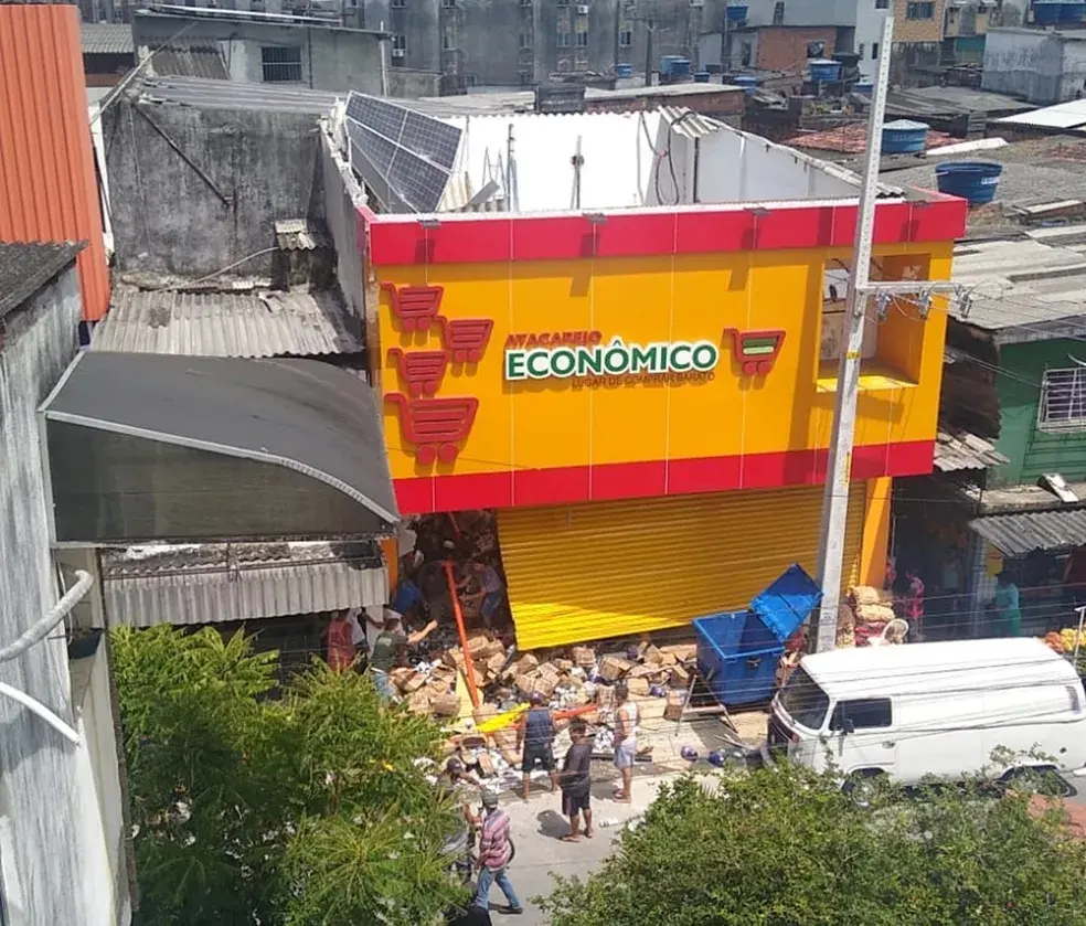 Em meio ao susto com o acidente, algumas pessoas tentaram saquear as mercadorias, mas a Polícia Militar evitou a ação.