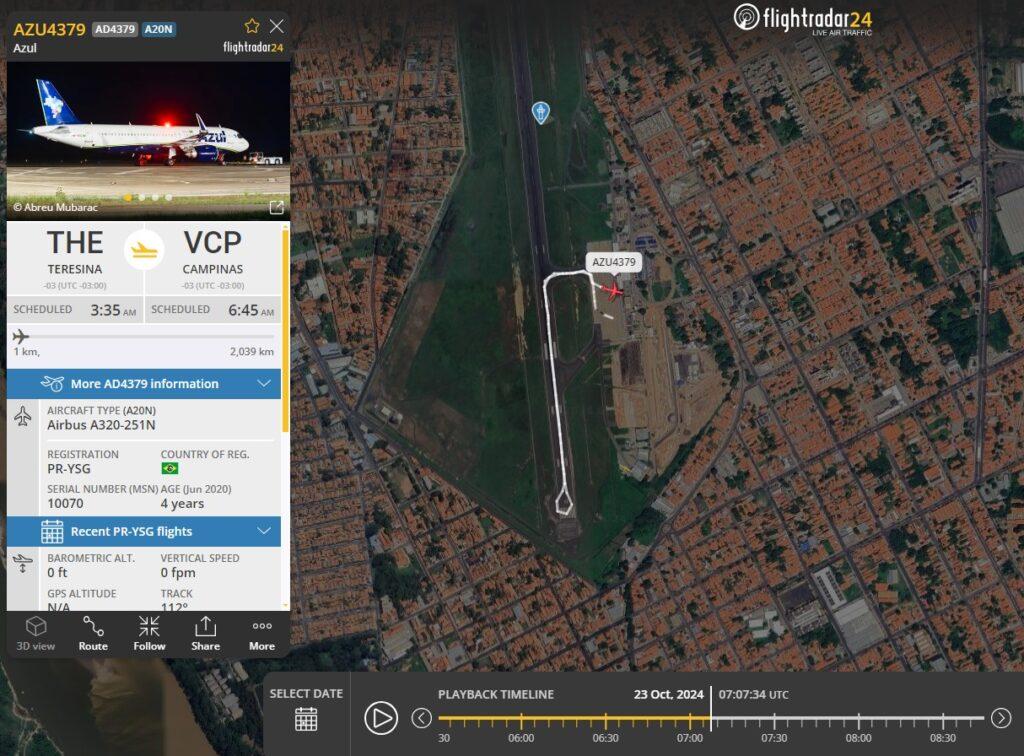 Já a Azul informou que o "voo AD4379 (Teresina-Viracopos) tocou, em solo, a ponta de sua asa com a de uma aeronave de empresa congênere. Todos os Clientes desembarcaram normalmente e em total segurança, valor principal para a Companhia. A aeronave está sendo inspecionada pelo time técnico e, como consequência, o voo precisou ser cancelado".