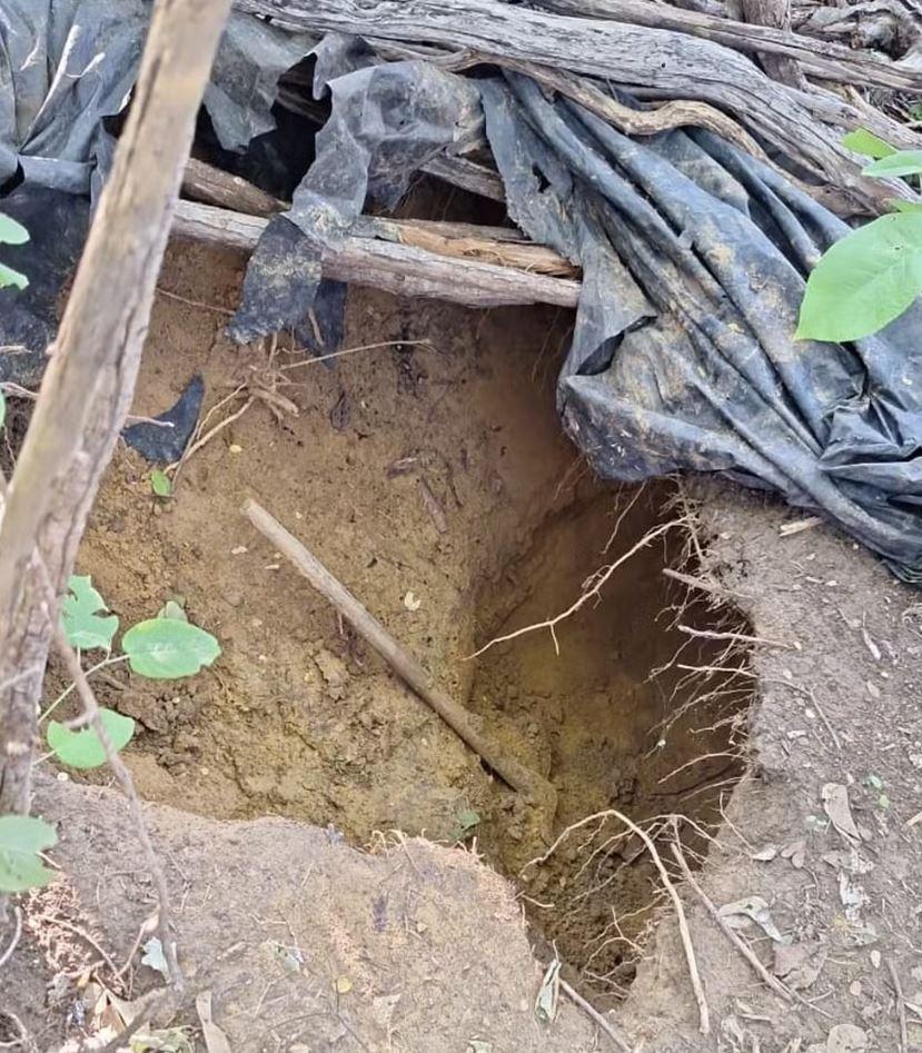 Além do buraco, agentes encontraram redes para dormir, embalagens de comida, um facão e uma lona. Os dois fugitivos permaneceram no local por sete dias, mas acredita-se que sigam na região.