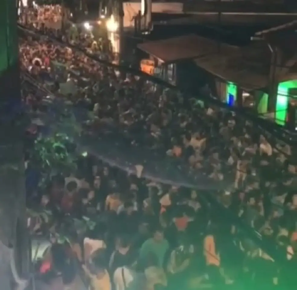 Vídeos publicados em redes sociais mostram moradores e turistas aglomerados nas ruas, a maioria deles sem usar máscara para evitar a disseminação do novo coronavírus.