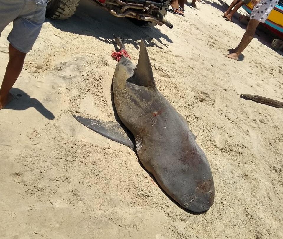 O tubarão da espécie Carcharhinus leucas, popularmente conhecido como tubarão-cabeça-chata, foi tirado da água e morto na faixa de areia no último domingo, dia 14. Conforme a Lei de Crimes Ambientais, abusar, maltratar ou mutilar animais silvestres, domésticos ou domesticados, nativos ou exóticos, é considerado crime ambiental (artigo 32). A pena pode chegar a um ano de detenção, além de multa, cujo valor é definido judicialmente.