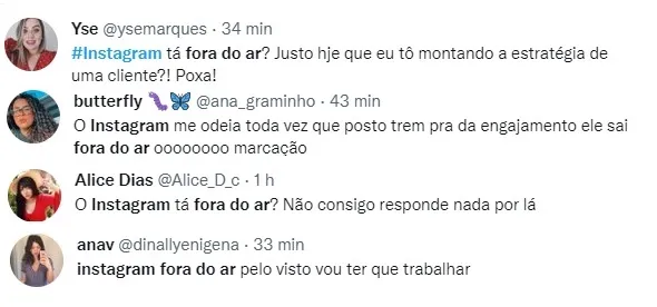 Relatos de instabilidade de usuários do Instagram no Twitter: