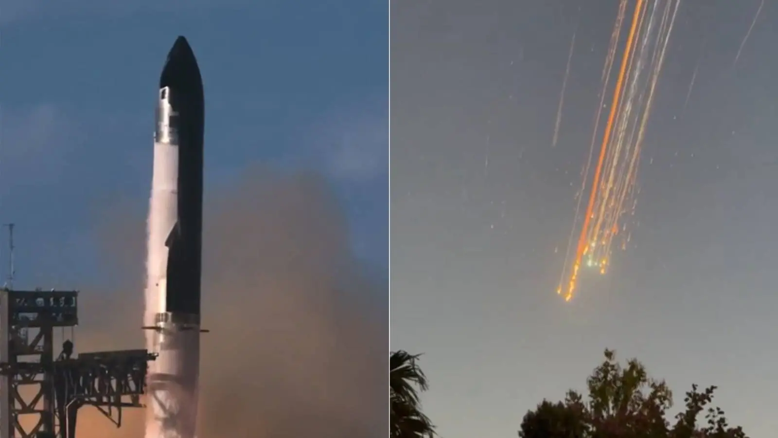 Nas redes sociais, internautas compartilharam imagens de possíveis destroços da Starship em chamas durante a reentrada na atmosfera. (Assista abaixo)