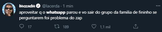 No Twitter, outra rede social, usuários relataram os problemas de acesso. Pelo menos 407 mil tweets foram registrados sobre o tema em cerca de dez minutos, levando o WhatsApp aos Trending Topics no início desta tarde.