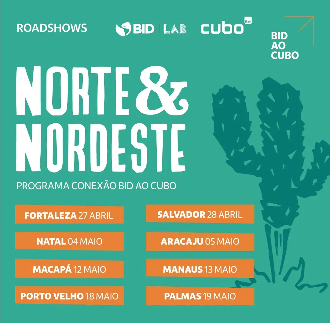 Começou nesta segunda-feira (26) o período de inscrição para o BID ao Cubo Norte e Nordeste, programa desenvolvido pelo Cubo Itaú, considerado o maior hub de fomento ao empreendedorismo tecnológico da América Latina, e o BID Lab, Laboratório de Inovação do Banco Interamericano de Desenvolvimento (BID). As inscrições podem ser feitas pelo site, e vão até 25 de maio.