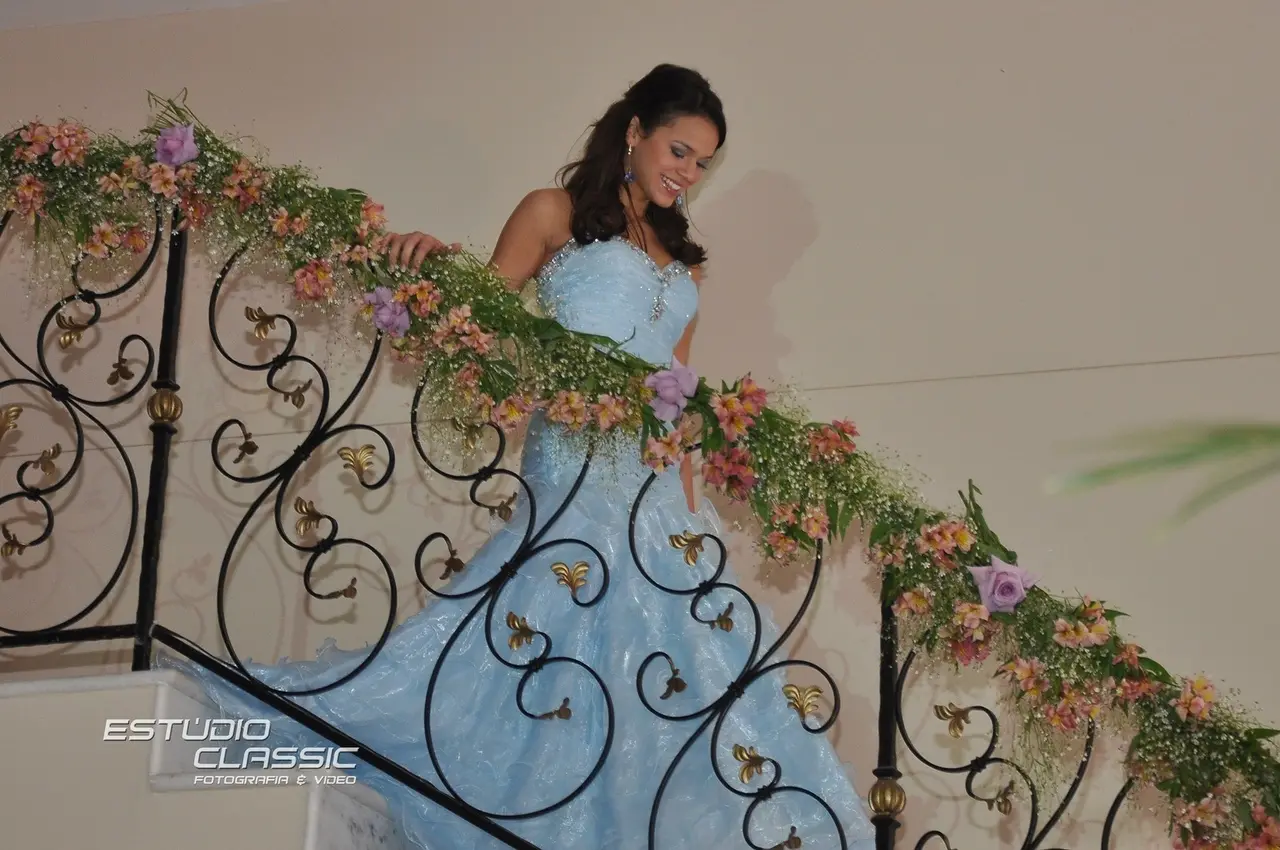 Um dos pontos altos da festa é o momento em que a debutante desce a escada no buffet. “É quando todos os olhares se direcionam a ela. Ali, ela é a pessoa mais importante da noite”, explica a cerimonialista Ariany Costa.