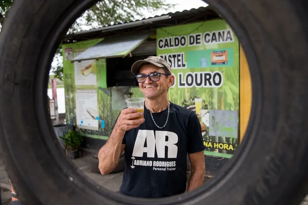 À beira da lagoa da Maraponga, borracharia surpreende com rodízio de caldo de cana