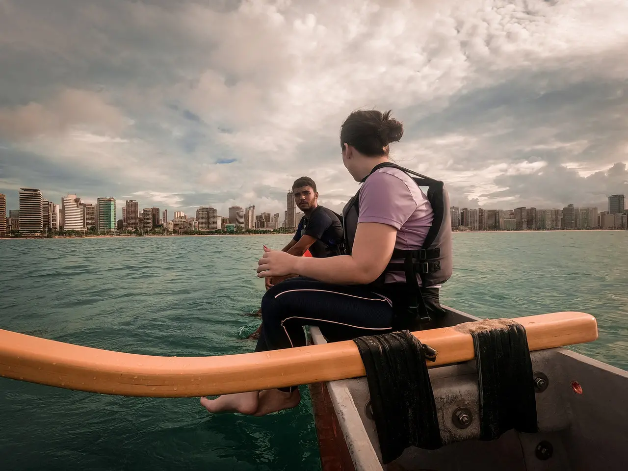 Uma baita experiência para se conectar de uma forma totalmente diferente com o mar e de ver a cidade com outros olhos. Visualizar o horizonte da imensidão da costa a 500 metros da terra firme é de tirar o fôlego. Fomos em um dia nublado, mas nem isso atrapalhou a beleza da paisagem. Aproveitei ainda para fazer um mergulho dali, que água deliciosa!