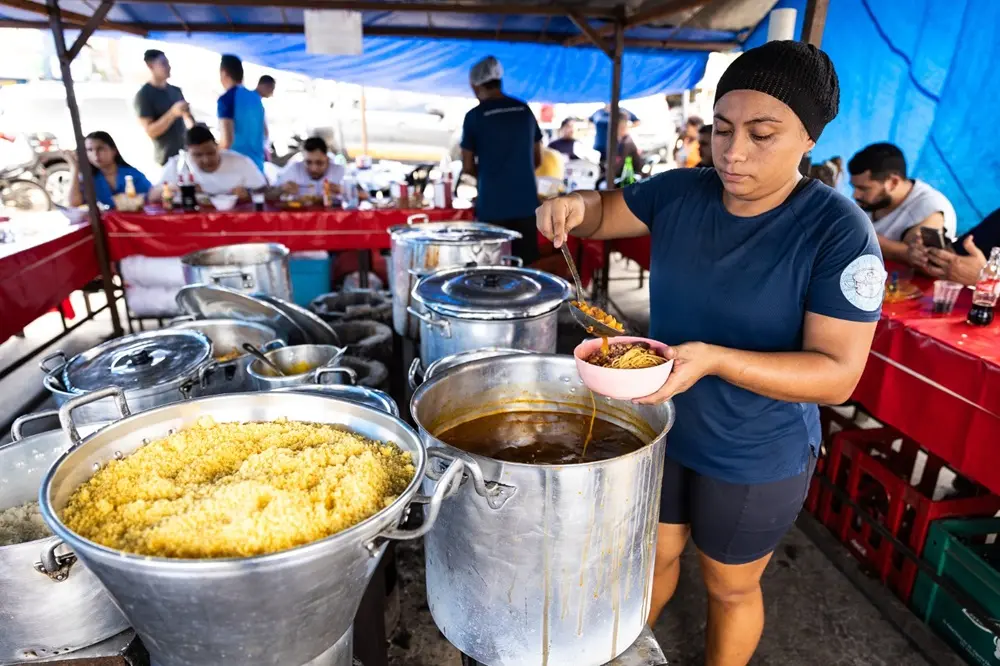 “Começamos servindo 10 quilos de arroz todo fim de semana. Várias vezes pensamos em desistir porque não dava, era muito trabalho e poucos clientes… Mas insistimos. Hoje vendemos 250 quilos de arroz e 300 quilos de panelada de quinta a domingo – tudo isso fruto de persistência e perseverança”, conta a proprietária, Cyntia Martins Campos, 35.