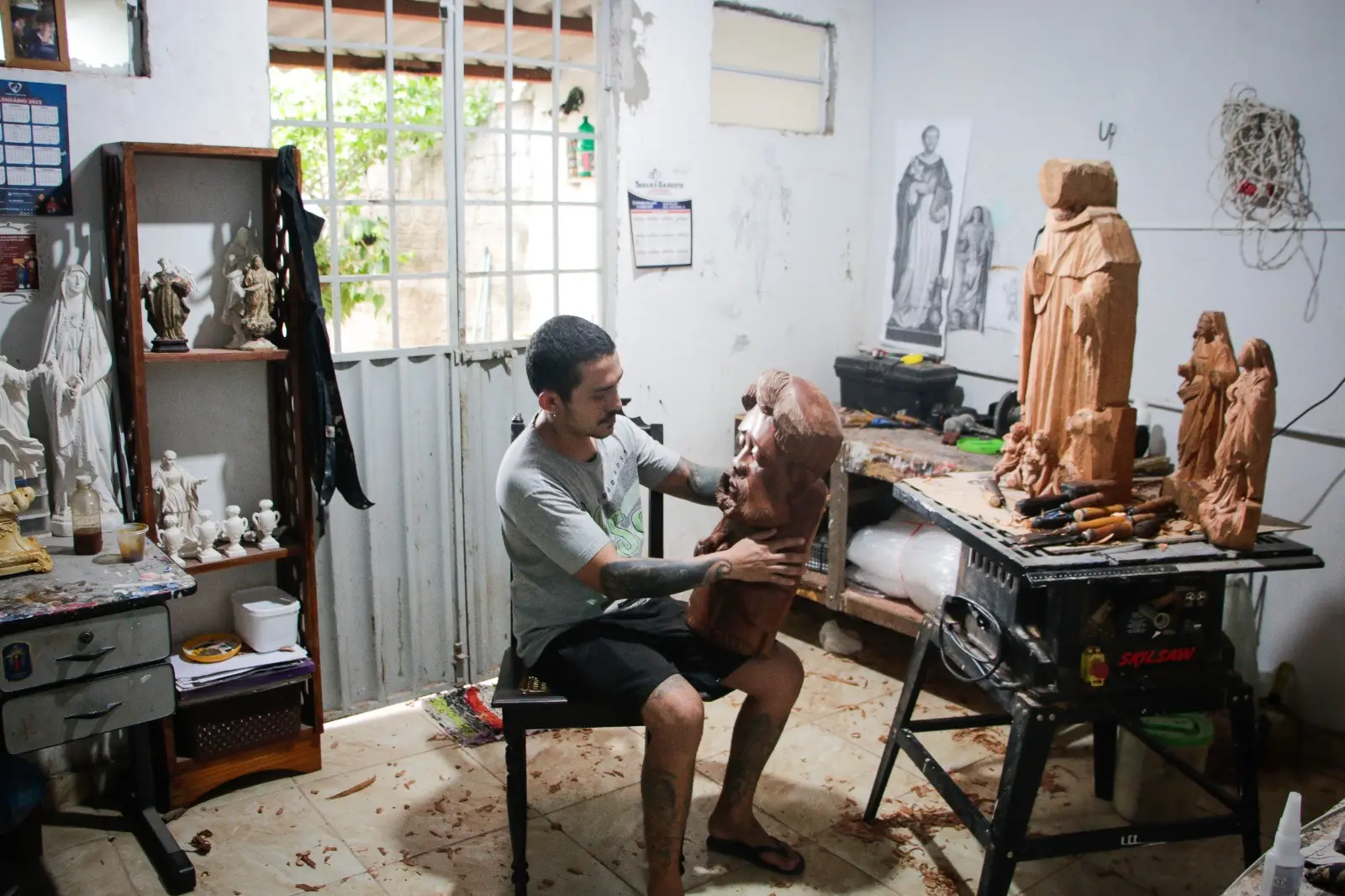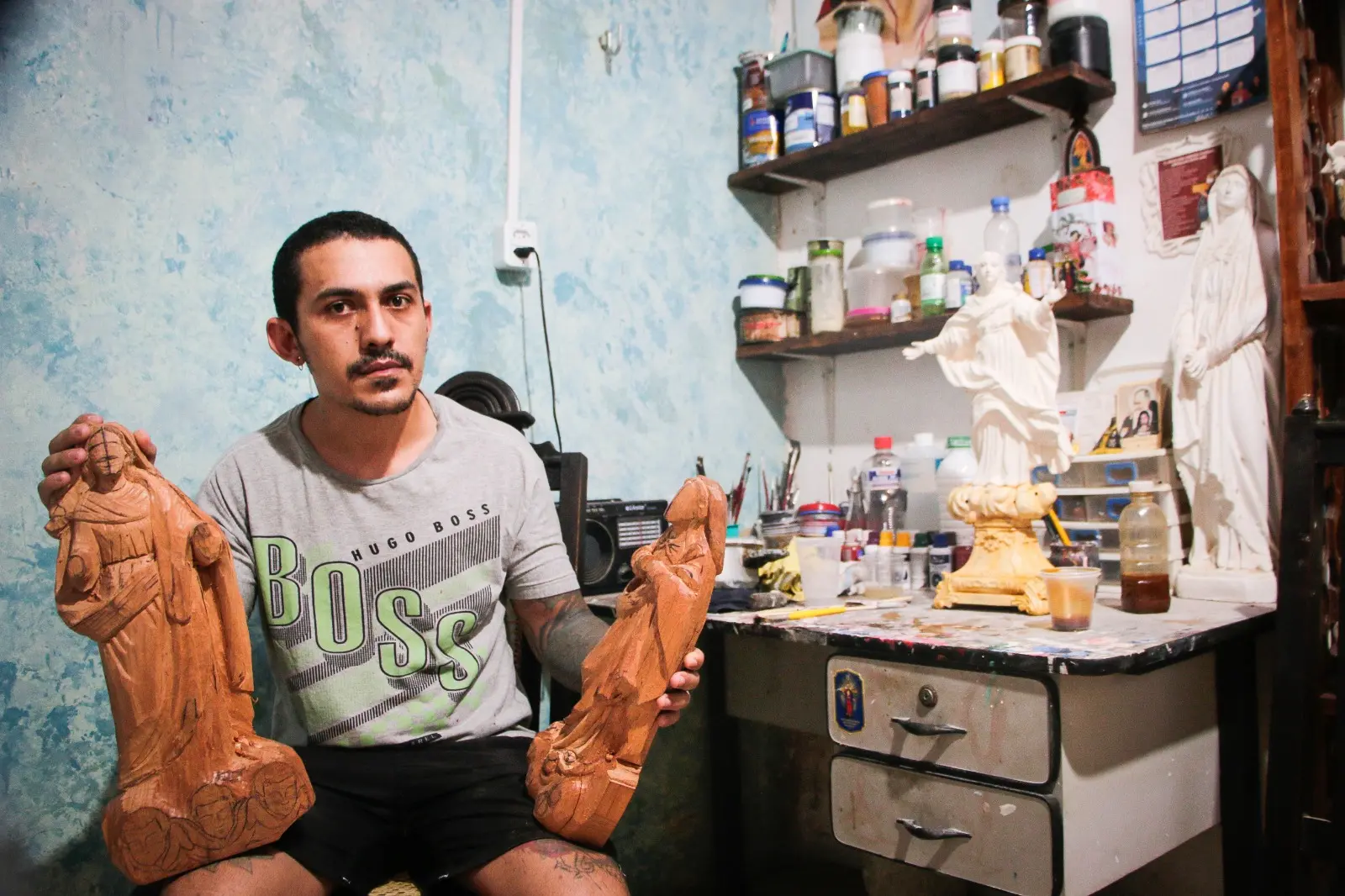 Outro artesão com peças na novela é Cícero Evânio, 32, conhecido como Panta Tavares. Foi das mãos dele que saiu a imagem de Santo Antônio presente no cenário, inspirada nos santos do pau oco – expressão relacionada ao Brasil Colonial, quando as imagens de santo eram utilizadas para contrabandear ouro e pedras preciosas.