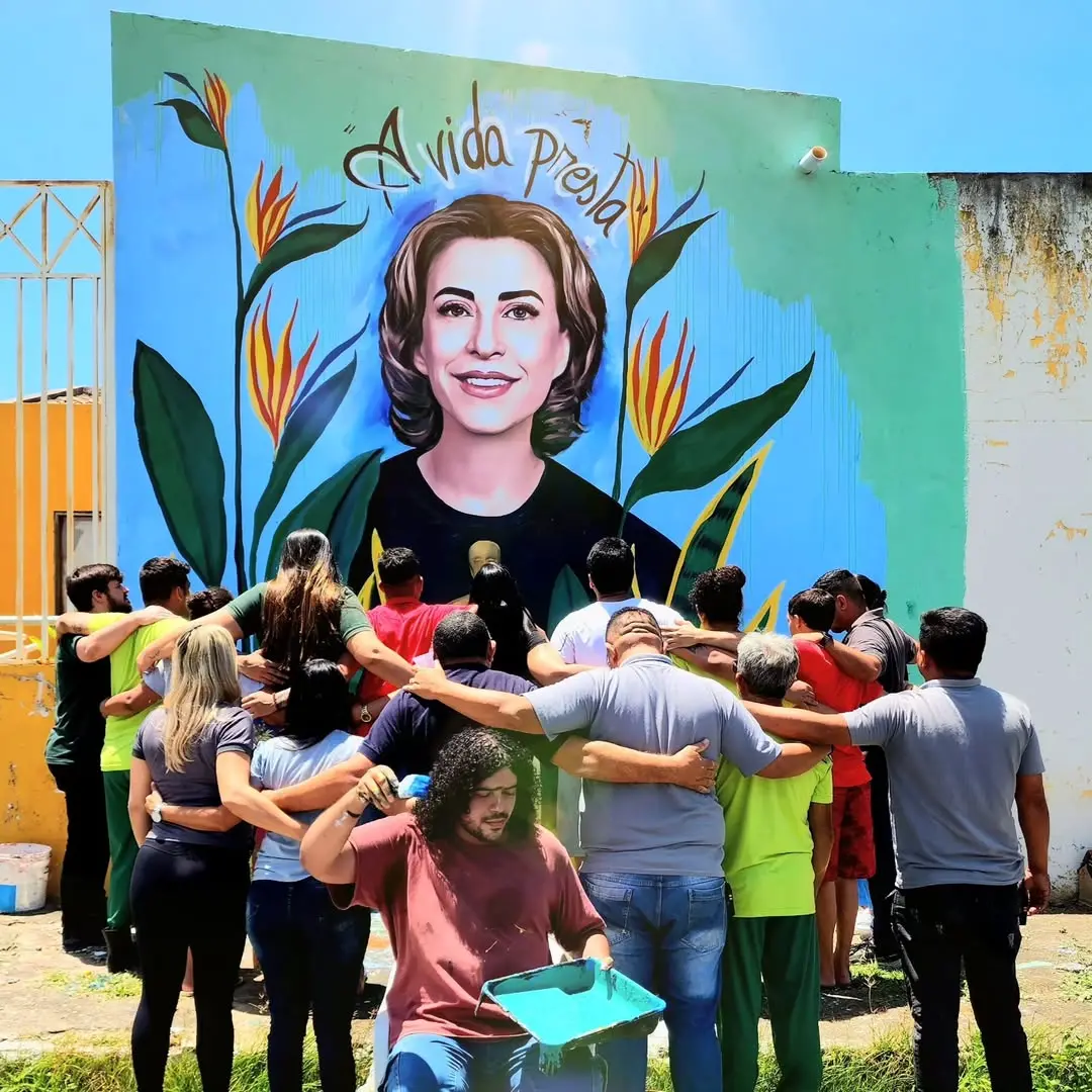 Artista cearense faz mural para Fernanda Torres na fachada de unidade de semi-liberdade em Juazeiro do Norte