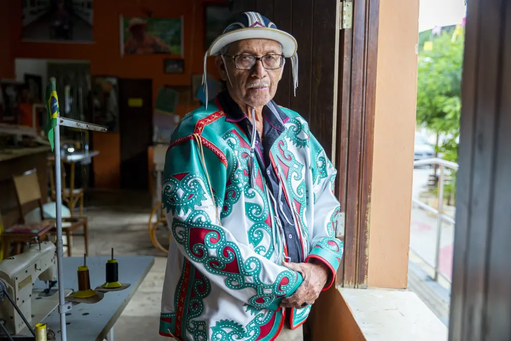 "Como eu tenho sangue de seleiro, o meu pai fazia um chapéu grande para usar no dia a dia, e eu um menor, um chaveiro ou um enfeitinho qualquer. Ele construía um baú grande, e eu aproveitava os pedacinhos de couro para fazer uns pequenininhos, ali com ele, malinando em cima de uma mesa. O primeiro baú, aliás, eu fiz com 8 anos, dei pra minha mãe", lembra o artesão, conhecido como "Espedito Seleiro".