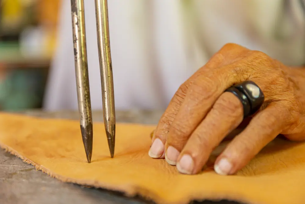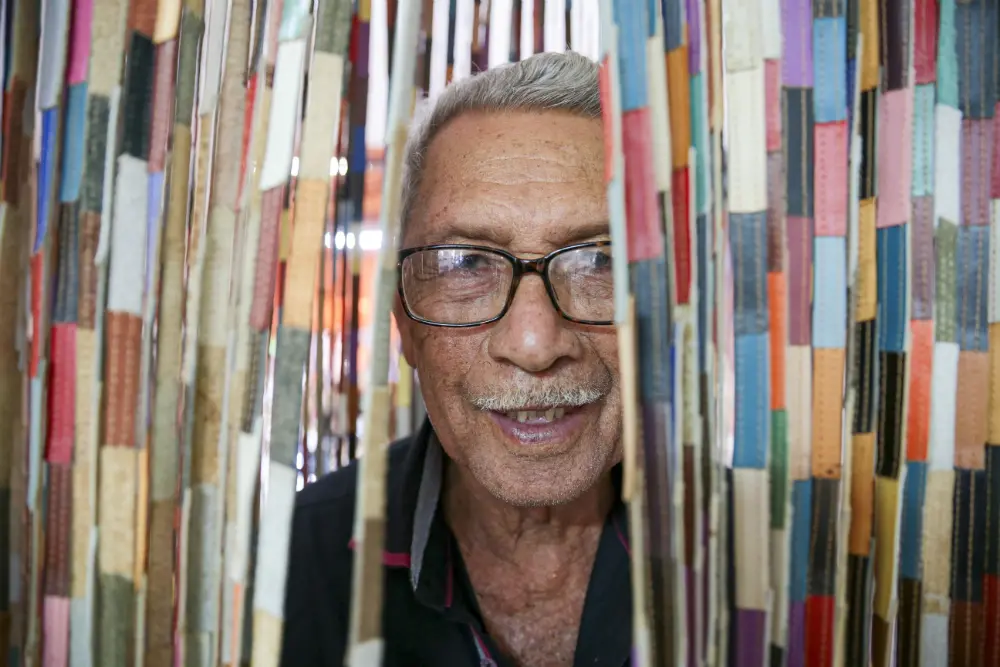 Espedito aceitou a proposta, mesmo não estando certo do que poderia oferecer. Então, lembrou das cores. Fez o couro ficar marrom a partir da interação com a planta nativa angico; preto, após imersão na lama; branco, com a cinza da catingueira; e vermelho, com a base do urucum.