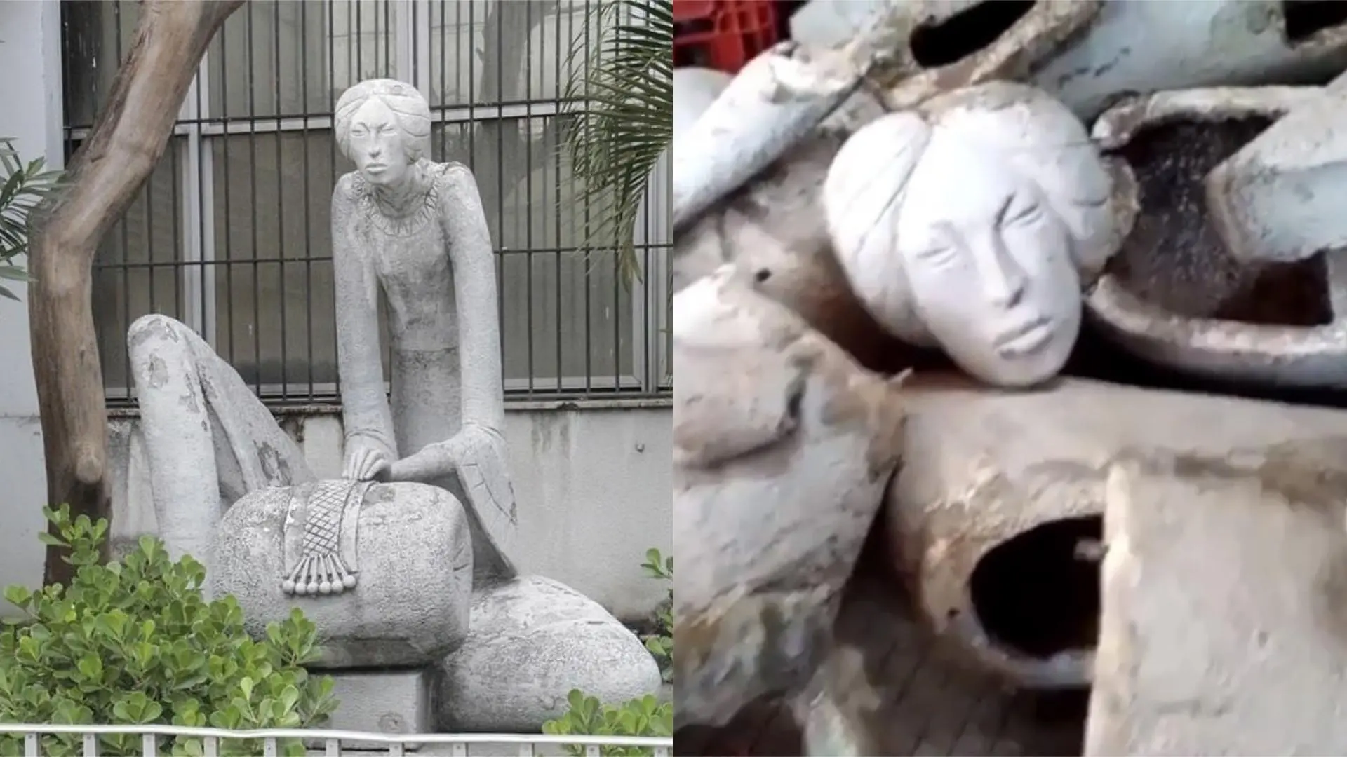 Instalada no jardim da agência do Banco do Brasil localizada na Praça do Carmo, Centro da Capital, desde 1966, a escultura “Mulher Rendeira” ficou aos pedaços após os operários da empresa Artflex Engenharia, contratada pelo Banco para realizar uma reforma, desmembrarem-na a marretadas.