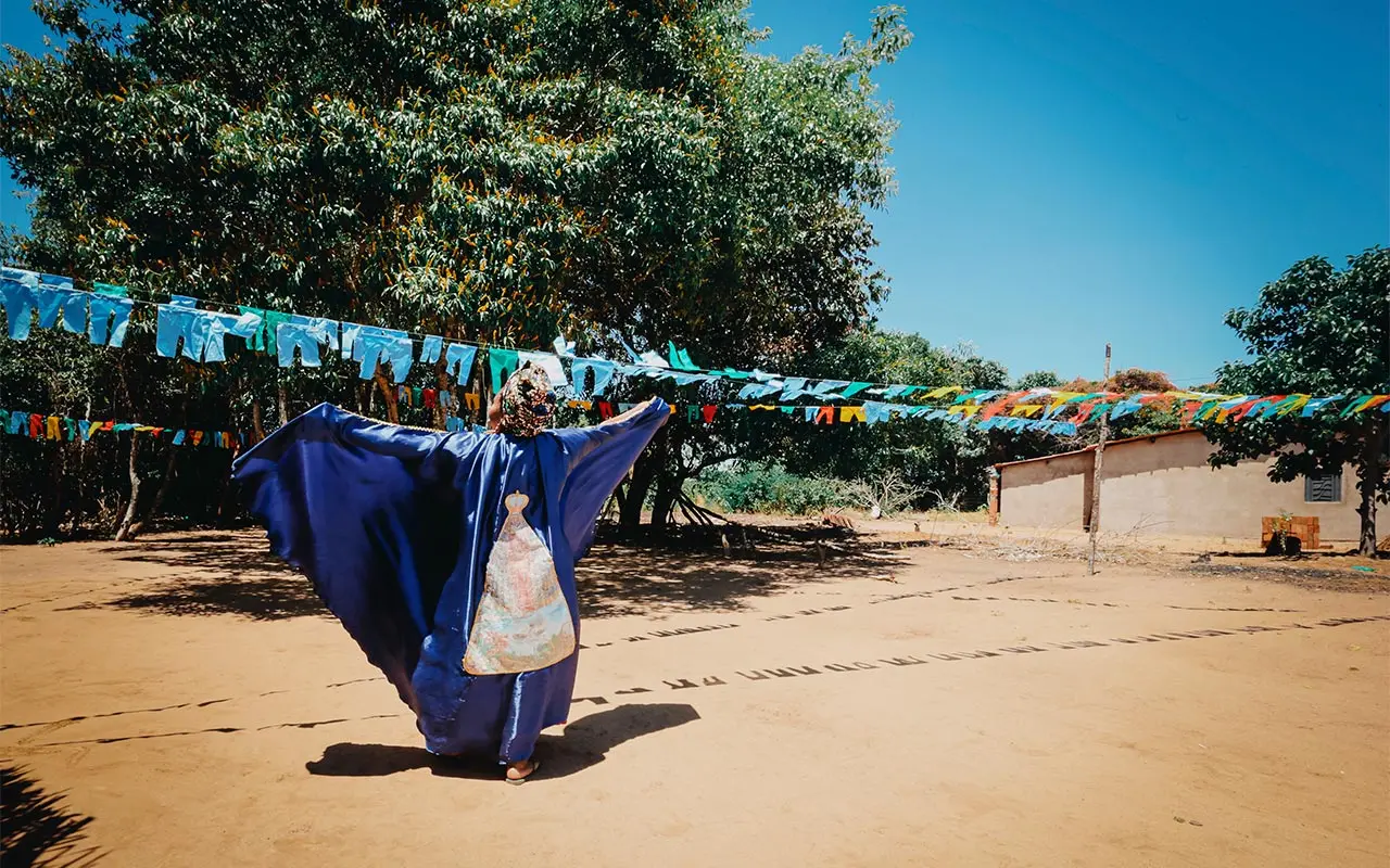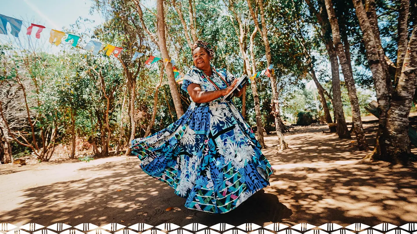 Maria Josefa da Conceição, 60 anos, ressignifica, entre crianças e idosos, a história que carrega no sangue por meio do canto e dança no Quilombo de Souza, no Cariri cearense