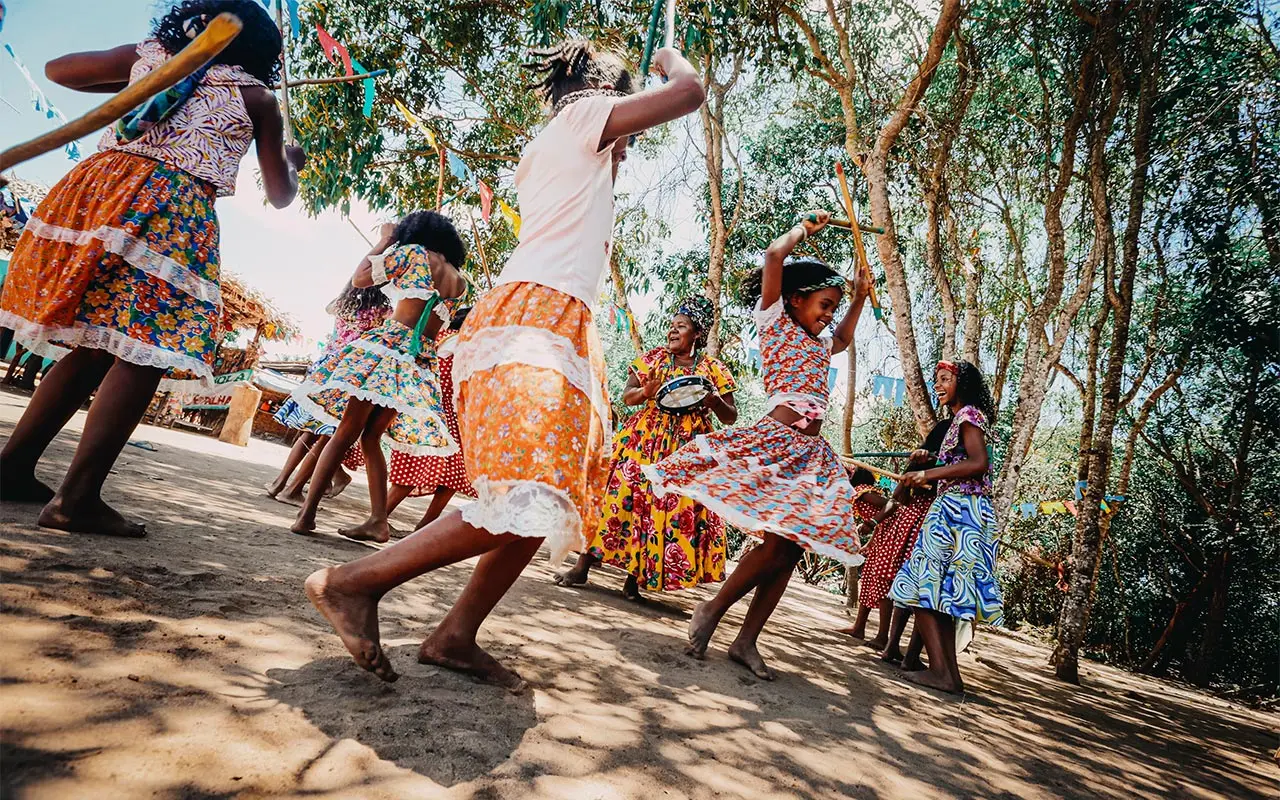 Envolver-se mais com a cultura e menos com a política também foi uma válvula de escape para Maria. No terreiro de casa, todo enfeitado com bandeirinhas de São João, ela reúne com frequência um grupo de 20 meninas das proximidades, todas com menos de 16 anos, para dançar coco, maneiro-pau, tocar instrumentos, cantar toadas e até fazer bonecas de pano negras de modo artesanal.