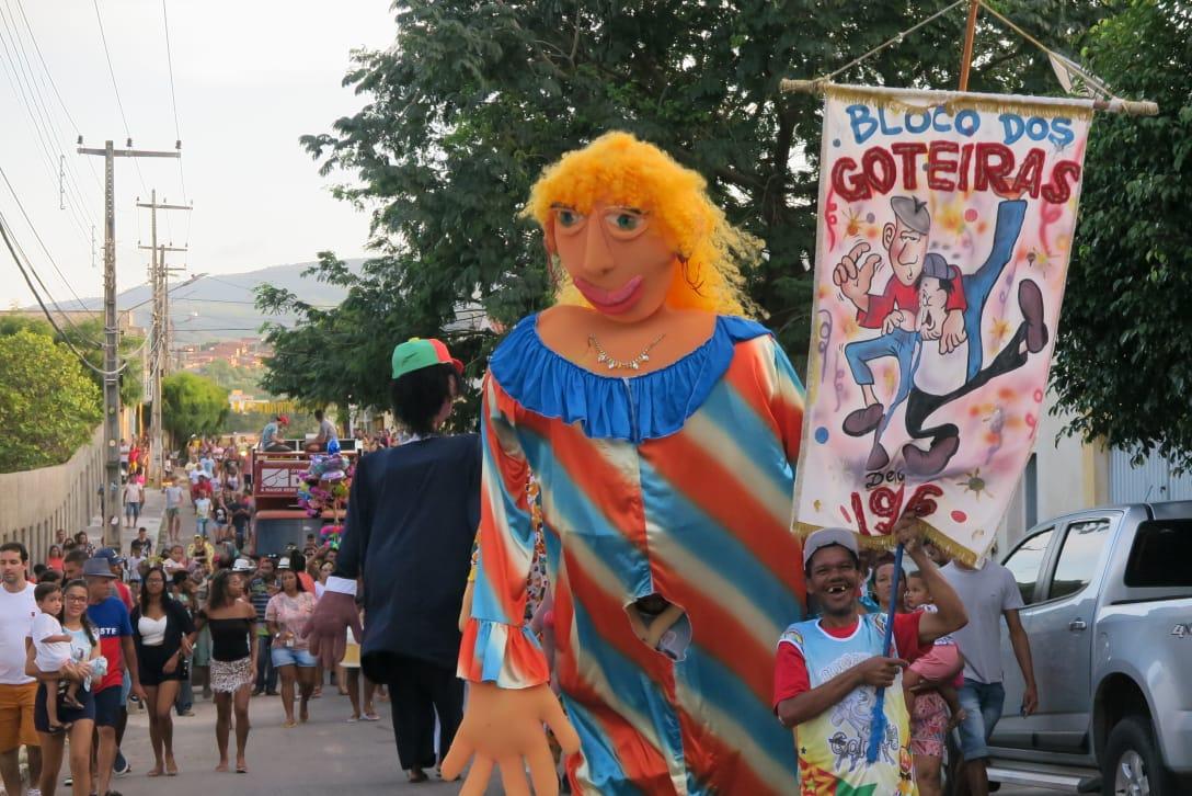 Bloco 'Os Goteiras' leva bonecos gigantes para as ruas de Barbalha