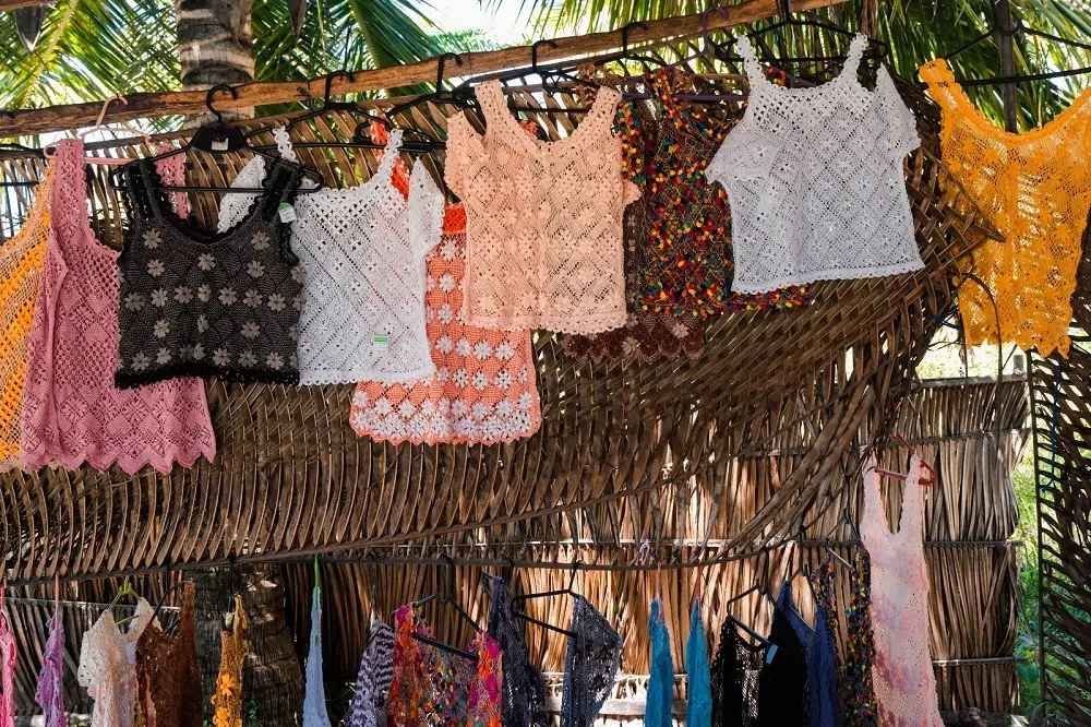 Além da gastronomia, o Ecocamping Lumiar é um charme em vários sentidos. Logo na entrada, uma lojinha colaborativa reúne dezenas de acessórios, peças de vestuário e de decoração feitas por 45 artesãs e artesãos das oito comunidades do entorno. O preço é justo e o catálogo é variado, rico em cores e criatividade.