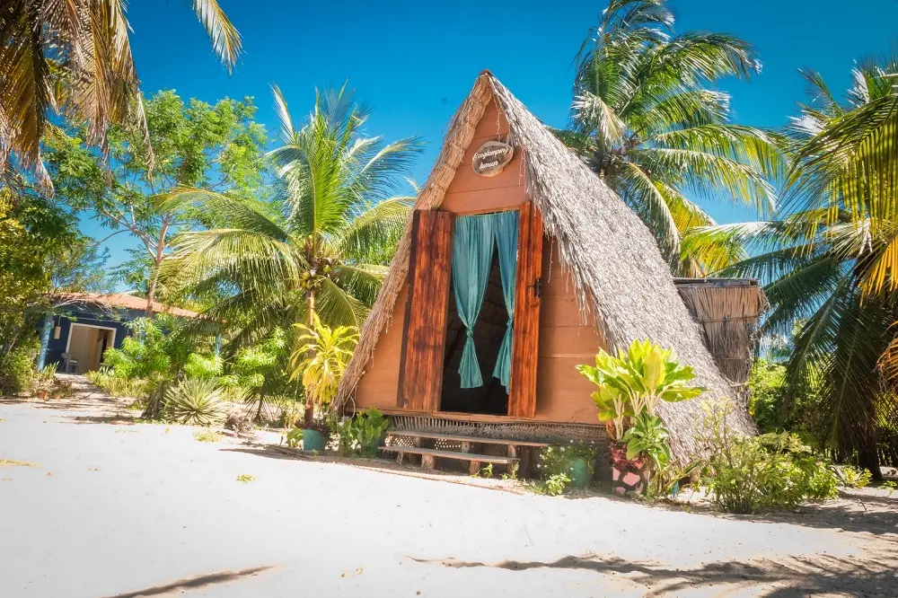 Mas a maior atração mesmo é a Ecocabana Lumiar, desenhada e realizada de forma praticamente intuitiva e com um aspecto pra lá de aconchegante. Com 25 m² e paredes feitas a partir da palha da carnaúba – o que permite uma agradável sensação térmica, independentemente de como o tempo estará fora – possui cama Queen Size, mosquiteiro, frigobar e ventilador. Uma pequena escada leva a outro cômodo.
