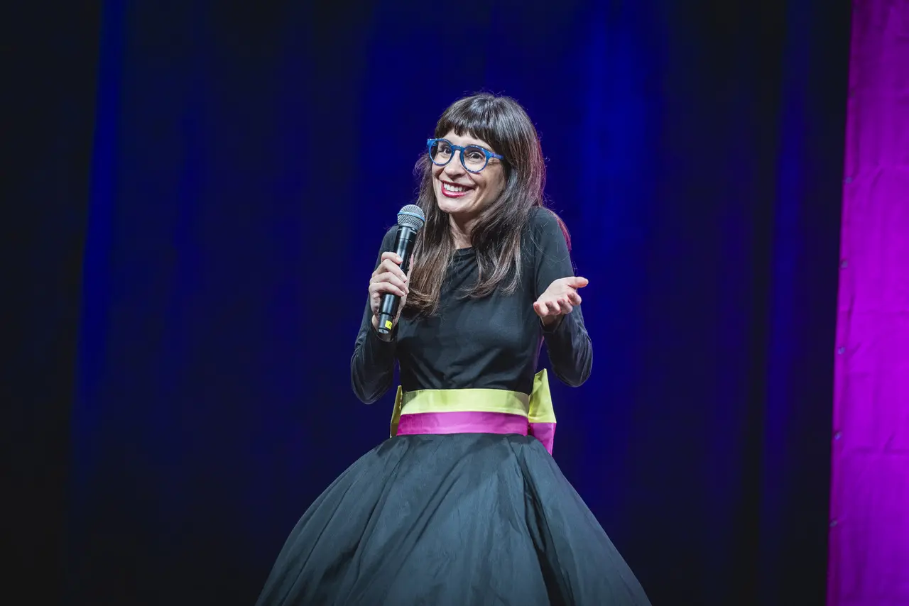 Para quem nunca foi a uma apresentação de podcast ao vivo, Camila descreve a sensação do ponto de vista de quem está no palco: “é como estar de fato numa sala conversando com pessoas muito próximas”.