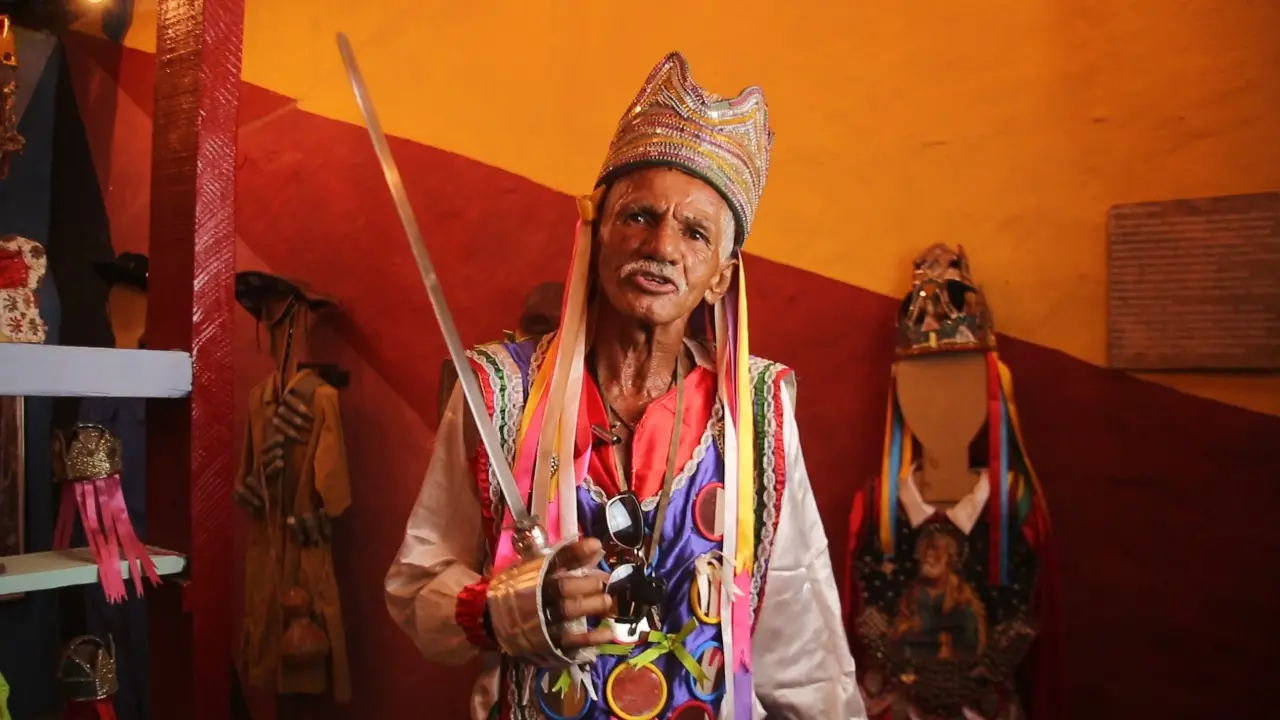 Em dezembro do ano passado, o Reisado se apresentou em um quilombo na terreirada de Mestre Aldenir, no Crato. A brincadeira integrou a programação do XV Encontro Mestres do Mundo e deu conta de expressar o talento e a tradição do grupo, cuja indumentária colorida convoca aquilo que é mais caro ao fundador: a felicidade de saber-se vivo.