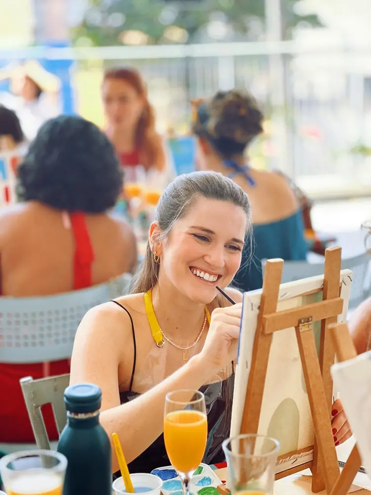 Segundo Letícia, muita gente chega estressada ou sobrecarregada e sai com sorriso no rosto, novas amizades e vontade de continuar explorando a pintura como hobby. “Tem algo muito poderoso em se permitir criar sem julgamento. E quando isso acontece em grupo, com leveza e acolhimento, a experiência se torna quase terapêutica”, considera.