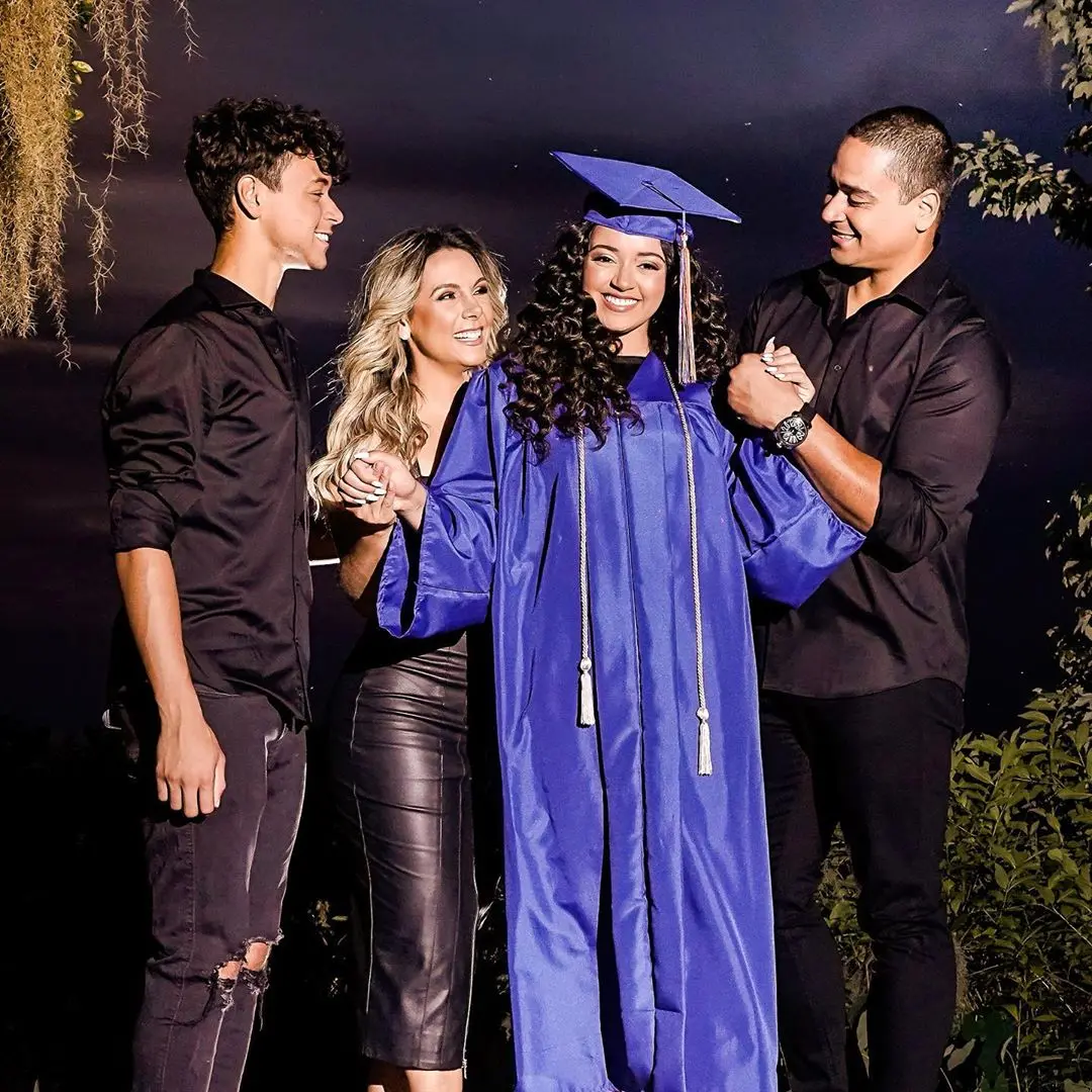 Xanddy e Carla Perez posam com os filhos na colação de grau da mais velha