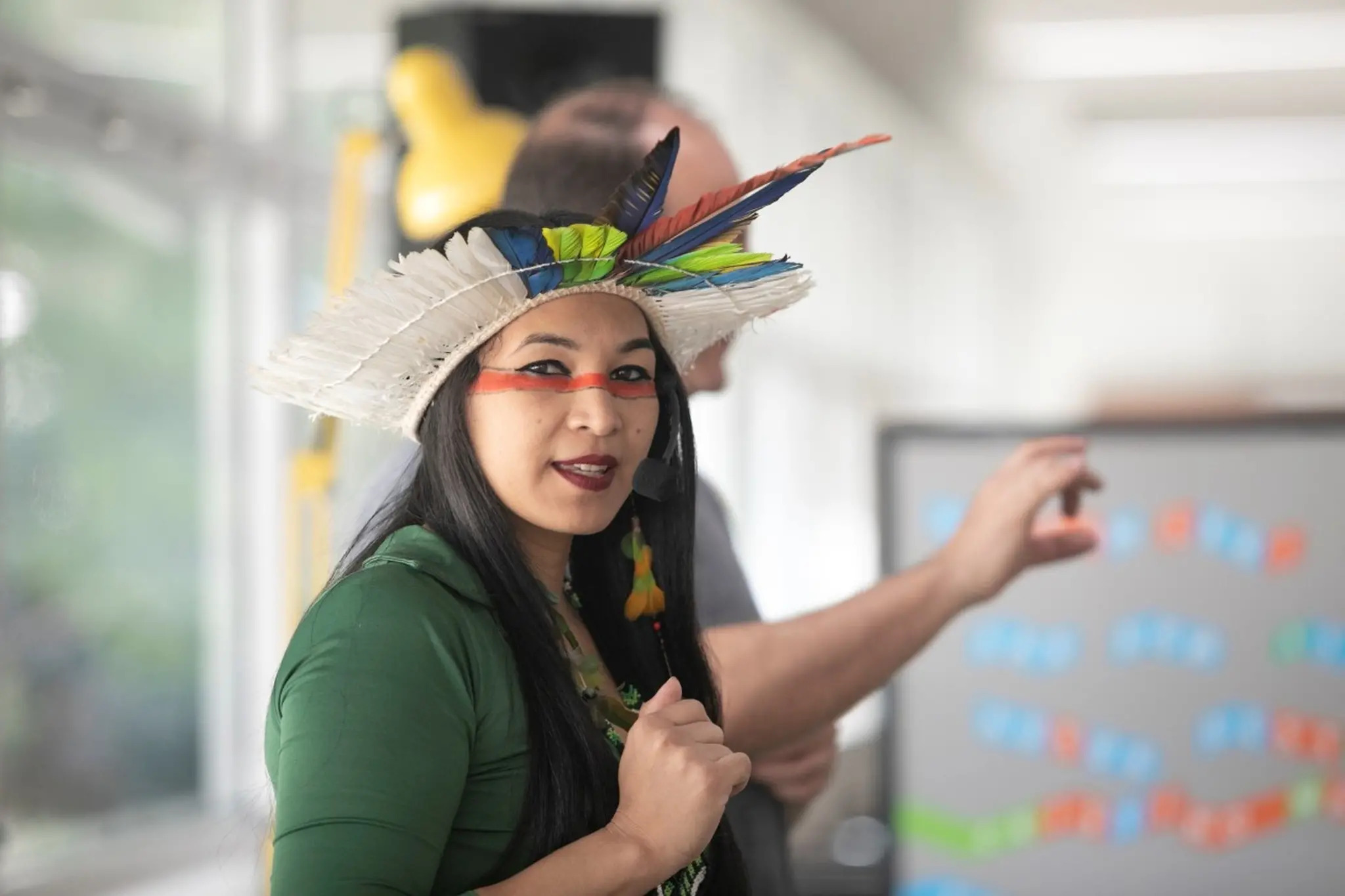 “A tecnologia nos proporcionou esse momento. Sei que tem gente que usa pra fazer coisas tristes, mas a gente tem que saber como usar. Nessa época da pandemia, tenho feito muitos eventos online, já participei de festivais das escolas, lives do instagram”, reflete a indígena.
