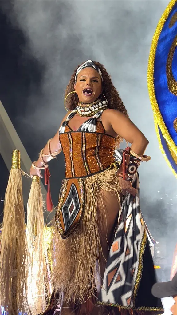 A artista estará no centro do quarto carro alegórico, o penúltimo do desfile da Tuiuti, chamado de 'Pajubá'.