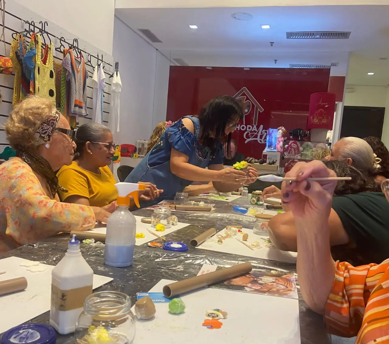 O projeto Cantinho da Arte do Shopping Parangaba, realizado em parceria com o Instituto IRIS (Instituto de Investimento e Responsabilidade Social), oferta cursos de artesanato gratuitos para pessoas com mais de 60 anos.