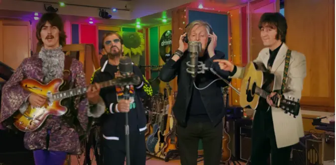 Nas imagens é possível ver os quatro artistas com auxílio de inteligência artificial. Também é possível acompanhar Paul McCartney e Ringo Starr cantando juntos, além de uma orquestra que faz a base da música.