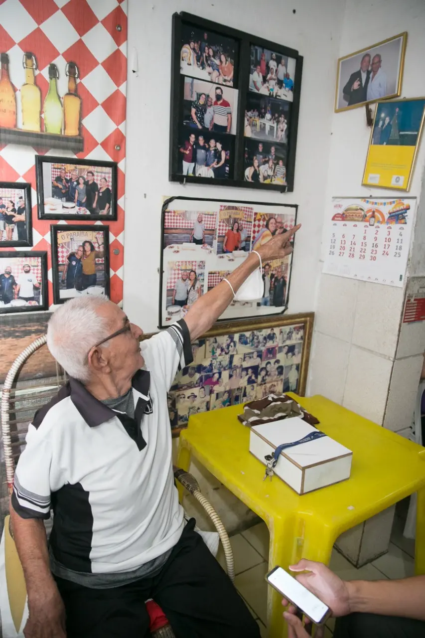 “A memória dele é muito boa, não esquece nada. No dia 1º de outubro, faz 97 anos. E todas as vezes, nessa mesma data, não perco a comemoração. É sagrado. Ele só não trabalha aqui na Sexta-Feira da Paixão. Há dois anos, ainda ia para o mercado fazer compras. Mas, como teve chikungunya e Covid, não foi mais. Nessa época, fiquei preocupado, sem saber se meu amigo voltava do hospital. Com menos de 30 dias, ele retornou”.