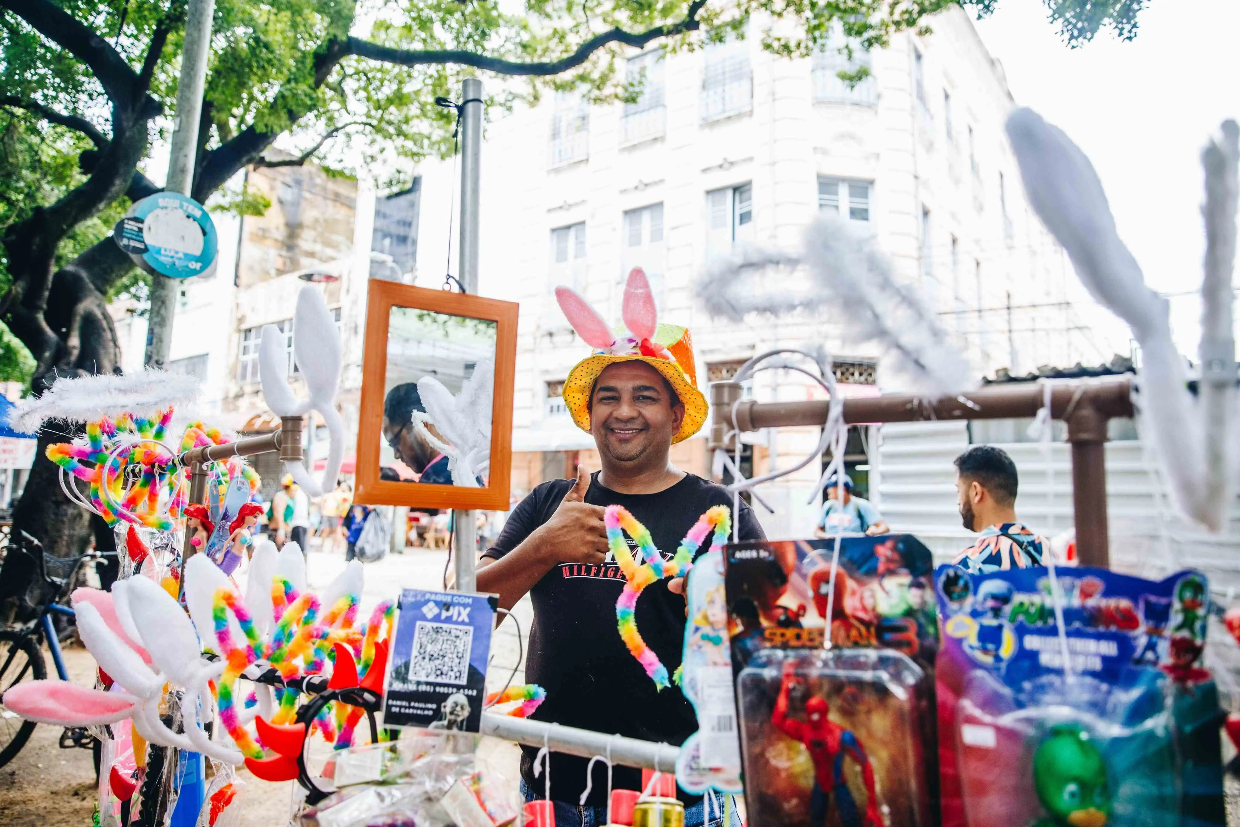 No Centro de Fortaleza, os ambulantes que ocuparam a Praça dos Leões, na tarde desta terça-feira (4), celebraram não apenas a folia, mas também o retorno financeiro que veio com a festa. A descentralização do Carnaval, iniciativa da Prefeitura de Fortaleza, espalhou diversos polos de diversão pelos bairros e, com os blocos, fez circular também a economia criativa.