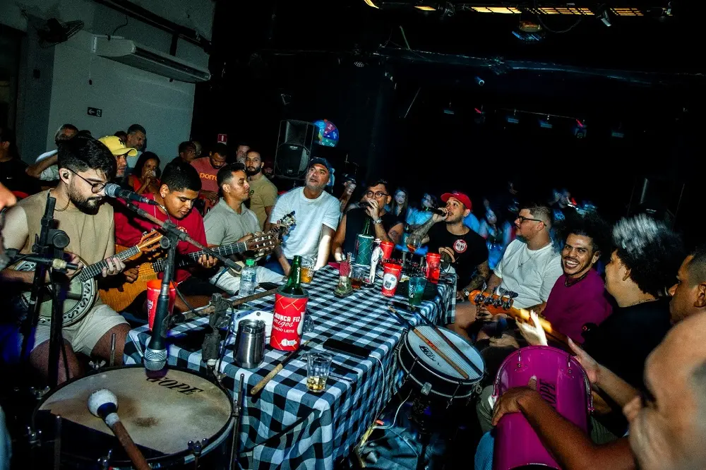 “A roda fica bem no meio do público, pra galera sentir o calor. O intuito é fazer algo bem fervoroso, igual às rodas de samba do Rio de Janeiro. A turma fica muito junta, batendo na palma da mão, sentindo a real energia da música”, descreve Belinho, músico e sócio da festa, com ingressos a R$25. Ele, o Grupo DTF e convidados puxam o bonde semanalmente.