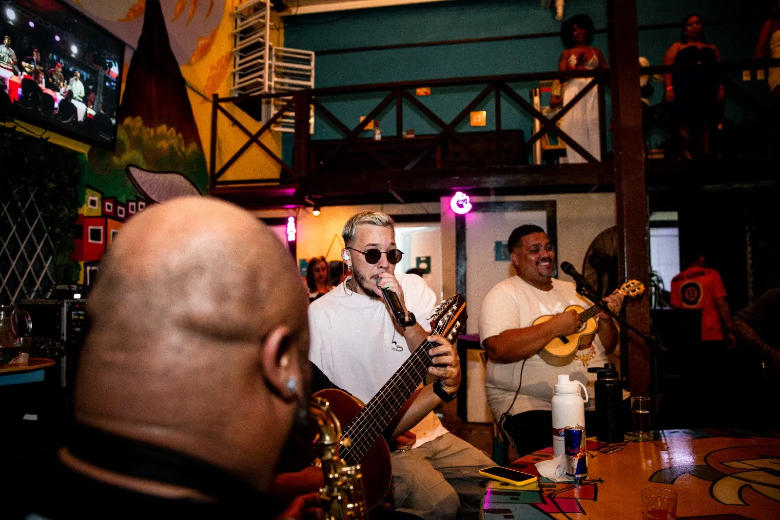 “São cinco cantores e tem o restante da rapaziada que faz a roda de samba acontecer. Por isso mesmo, toda segunda tem por volta de 400 a 500 pessoas. Já chegamos a mais de 700”, contabiliza Matheus Carvalho, contente pela consolidação da cena e reforçando que, ao longo do show, ninguém desce do palco. Banda e plateia comungam do mesmo espírito.