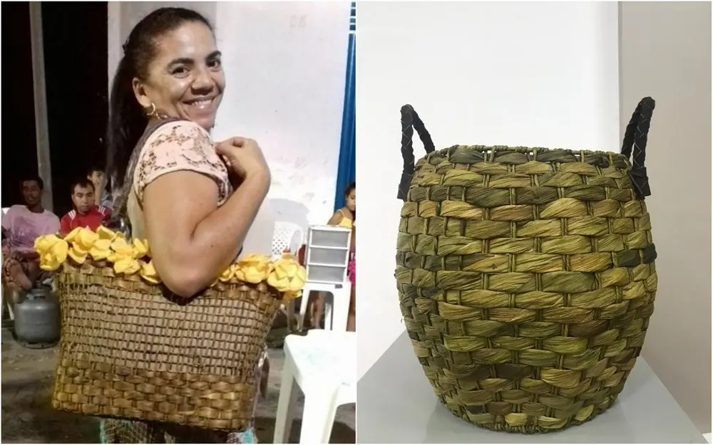 Atuando na manipulação da palha de milho, a artesã produz acessórios e mobiliários com a matéria-prima há pelo menos 20 anos. É uma das lideranças à frente do grupo Genipoart, que reúne artesãs dedicadas na confecção de peças com o produto. Todas estão envolvidas no processo, desde a retirada da palha, passando pelo tingimento e a manufatura dos produtos.