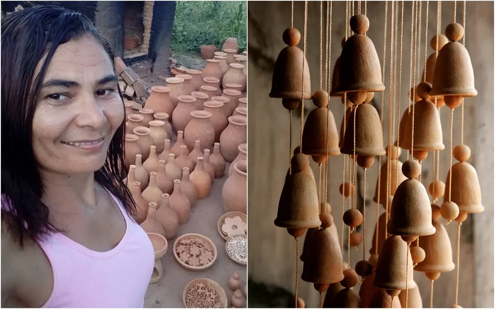 Habilidosa com o barro, a artesã modela peças utilitárias e decorativas há 26 anos no Sítio Baixa do Quaresma, localizado a 5 km de Missão Velha. É possível, ainda, conhecer o processo de produção que inclui os tradicionais potes e panelas. No entanto, os móbiles, construídos com peças de argila, são o diferencial do trabalho da artesã. Corrinha desenvolveu 12 tipos diferentes do produto, com preços que variam de R$ 35 a R$ 60.