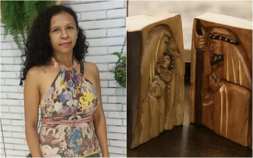 Com experiência de uma família de escultores, a artesã de Juazeiro do Norte desenvolve trabalho de arte sacra em madeira. Entre as peças, estão santos e oratórios. Um dos mais pedidos é o oratório em que a madeira bruta é preservada por fora, enquanto na parte interna Silvana talha imagens sagradas. Representações da santa ceia e o do Divino Espírito Santo estão na cartela de peças da artista que tem mais de 30 anos como escultora.